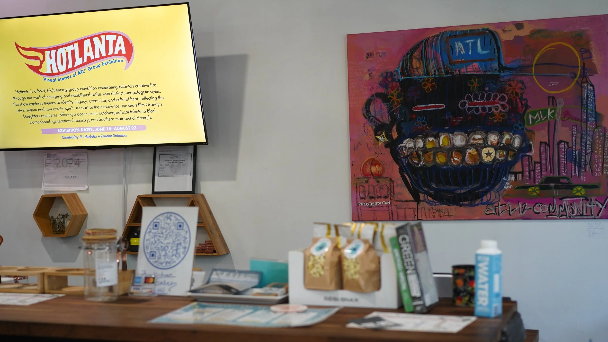 The art curator at The Bookstore Gallery, K. Medulla designs exhibitions and creative initiatives that engage diverse audiences. The curator’s past work includes co-founding Sip Museum in Adamsville. She transformed her family-owned building into a hub for art showcases, podcasts, cultural gatherings, and holistic events. The curator has collaborated with organizations and brands like non-profit The Chad Livsey Project, Atlanta Public Schools, Rap Snacks, Ape Water, and Divine Libations, while connecting emerging artists with community and entrepreneurial opportunities.