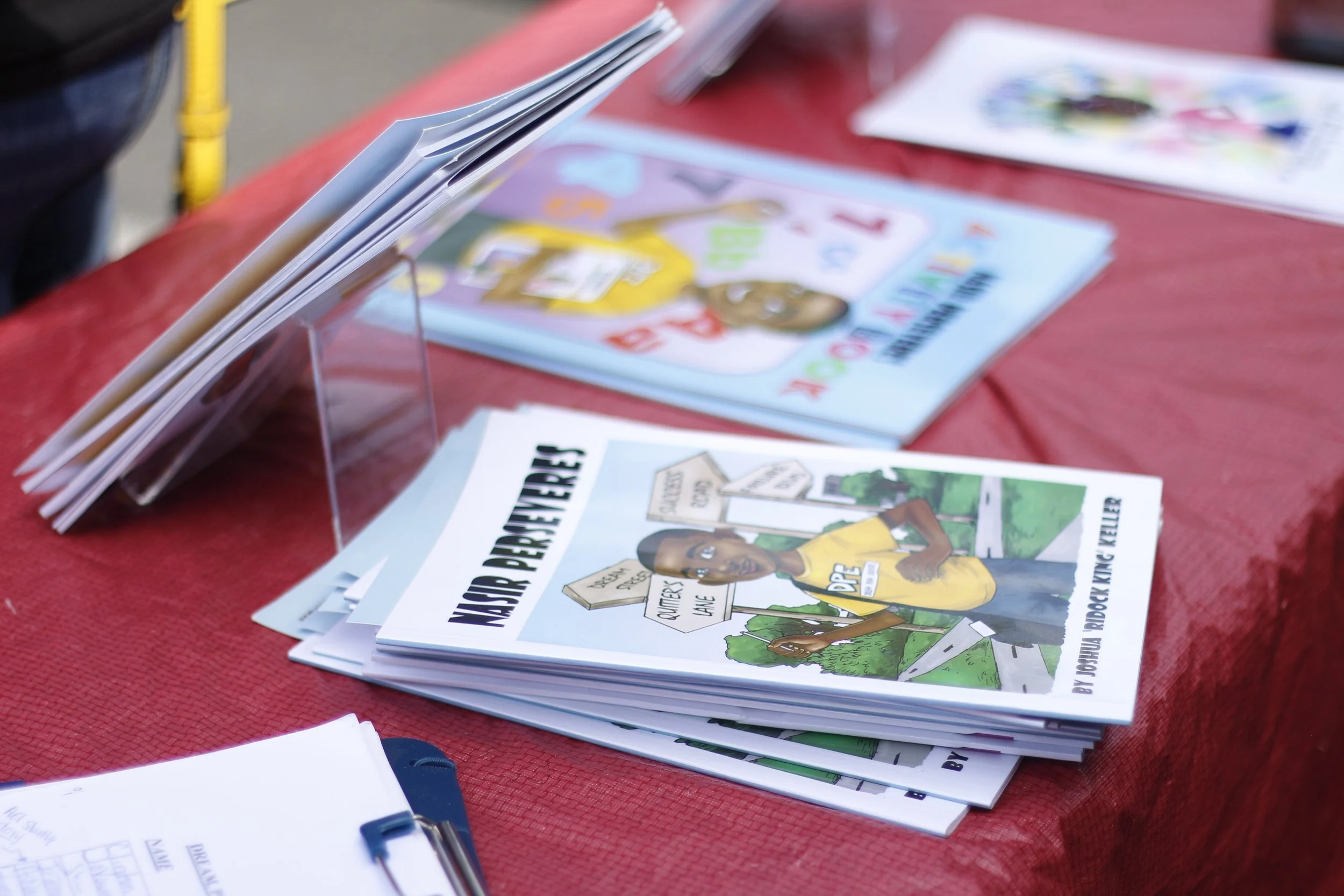 The exhibition opening united families, educators, and the community, supported by videographers who documented the event. To deepen the impact, Black author Joshua Keller shared his books such as Nasir Perseveres, empowering students to face life’s challenges and see entrepreneurship as a path forward. The event blended art, literature, and community, leaving a lasting impression on students and families alike.