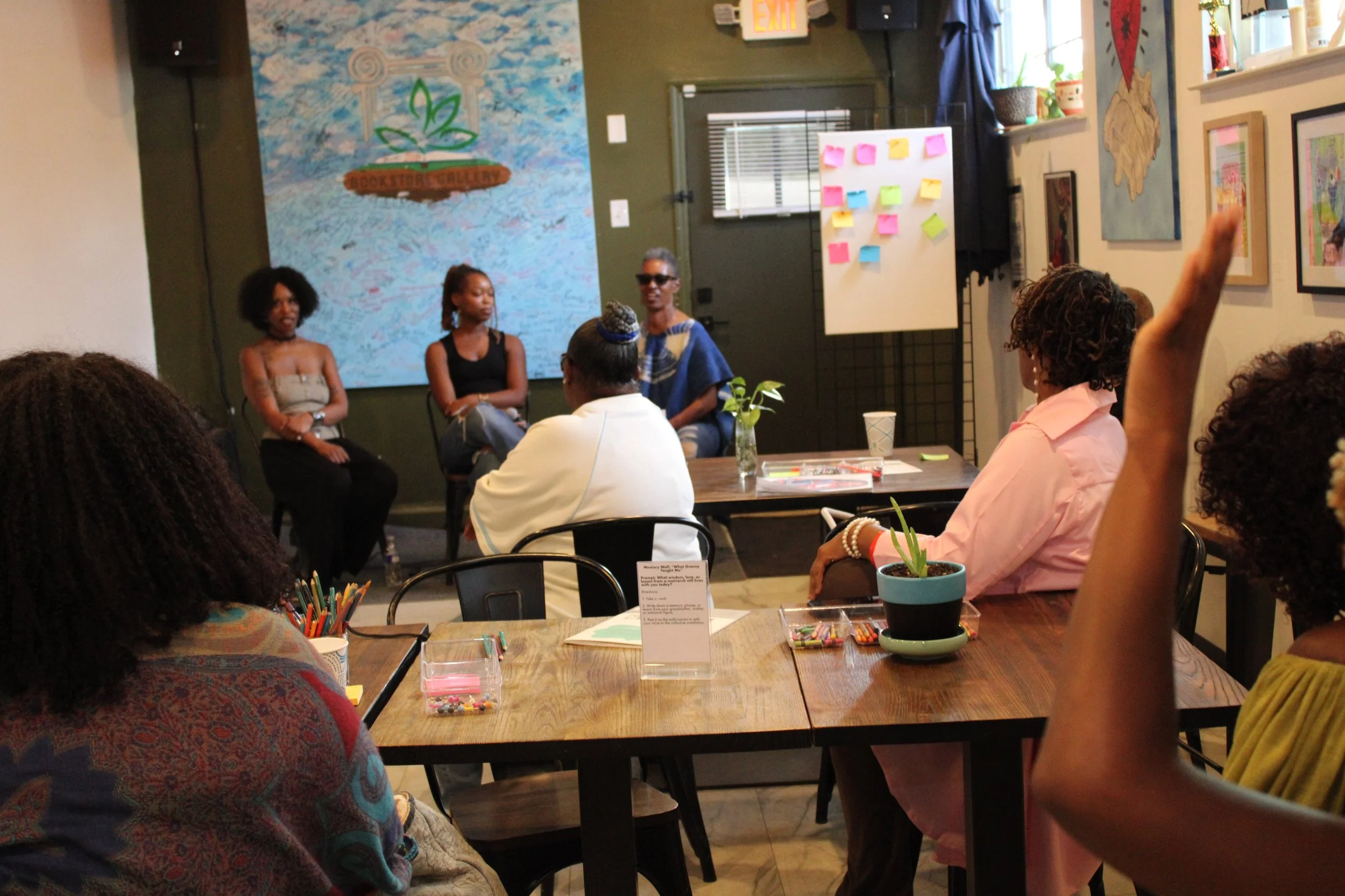 This was a special program developed as an extension of the Hotlanta: Visual Stories of ATL exhibition, expanding its themes of Southern lineage, generational memory, and family storytelling. Anchored by two short films created by Hotlanta filmmaker, Summer J. Robinson featured. The event combined multi-room film screenings, interactive art-making, and guided exhibition viewing into a unified visitor experience. Attendees began by exploring works from the main Hotlanta show before moving into dedicated screening rooms and an interactive quilt-building activity designed to help visitors reflect on their own heritage and community connections. The program concluded with a live panel discussion featuring the filmmaker, community voices, and myself, offering deeper dialogue around the films and their cultural significance.